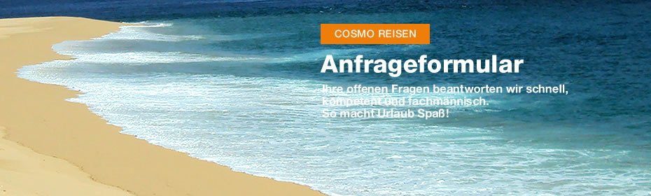 Sie haben offene Fragen oder wünschen eine individuelle Reiseberatung? Rufen Sie uns unter 01805 / 01071 710183 an oder füllen Sie das Anfrageformular auf dieser Seite aus. Wir kontaktieren Sie umgehend.